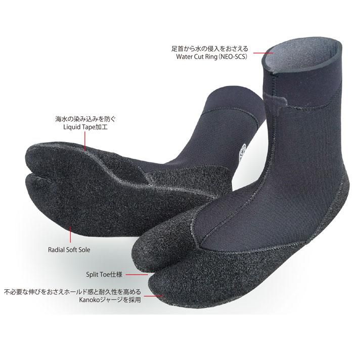 ソールはSpilit-toe仕様(タビ型)で耐久性に優れ素足感覚に近いRadial-soft-sole採用。